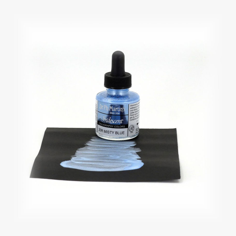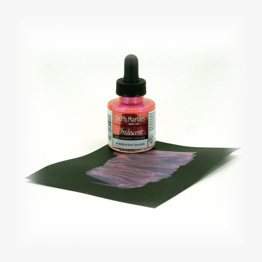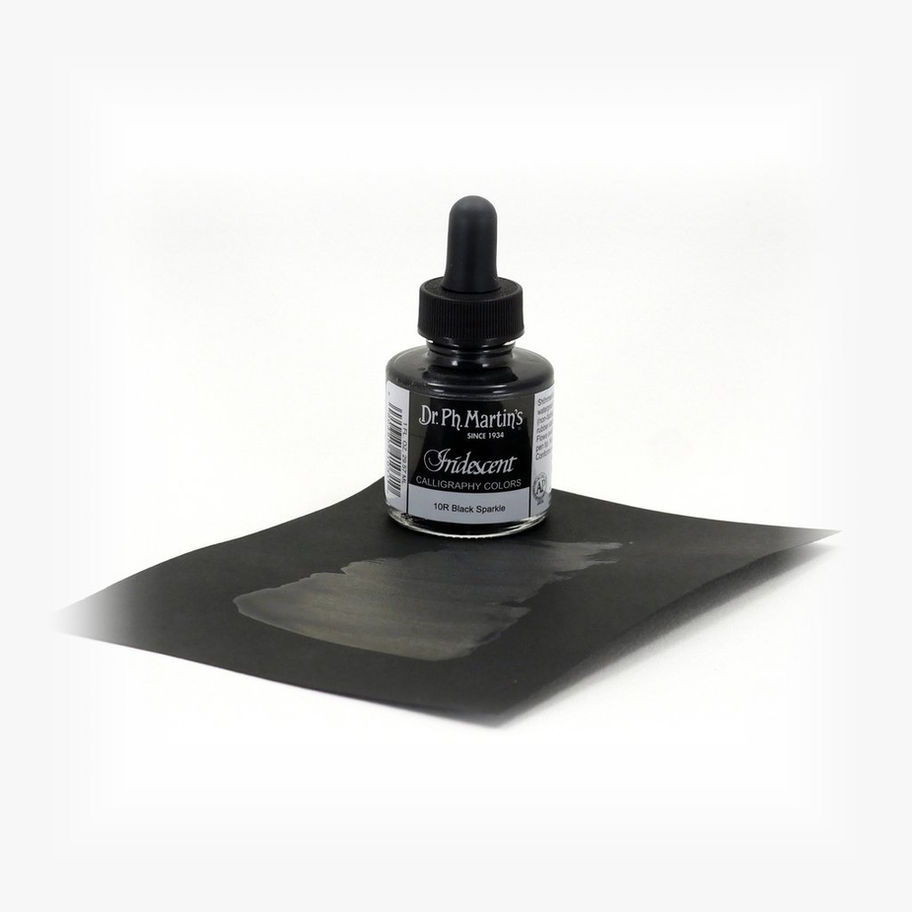 Dr. Ph. Martin's Iridescent Calligraphy Colors are shimmering, highly reflective colors that are lightfast, waterproof, archival, and permanent. Made from the finest ground pigments, the unmatched colour intensity of Dr. Ph. Martin's Iridescent Calligraphy Colours gives you the ability to cover dark surfaces with a dynamic range of metallic color. Great for use on paper, wood, board, metal, and some plastics. The Iridescent Calligraphy Colours dry smooth and even every time. No start and stop marks. Great for use with pens (both calligraphy and dip pens), airbrushes, and brushes. Designed specially for calligraphy, to accent watercolour work, or anywhere where you need to add a magical shine and shimmer that only pigment-based iridescent colour can provide.